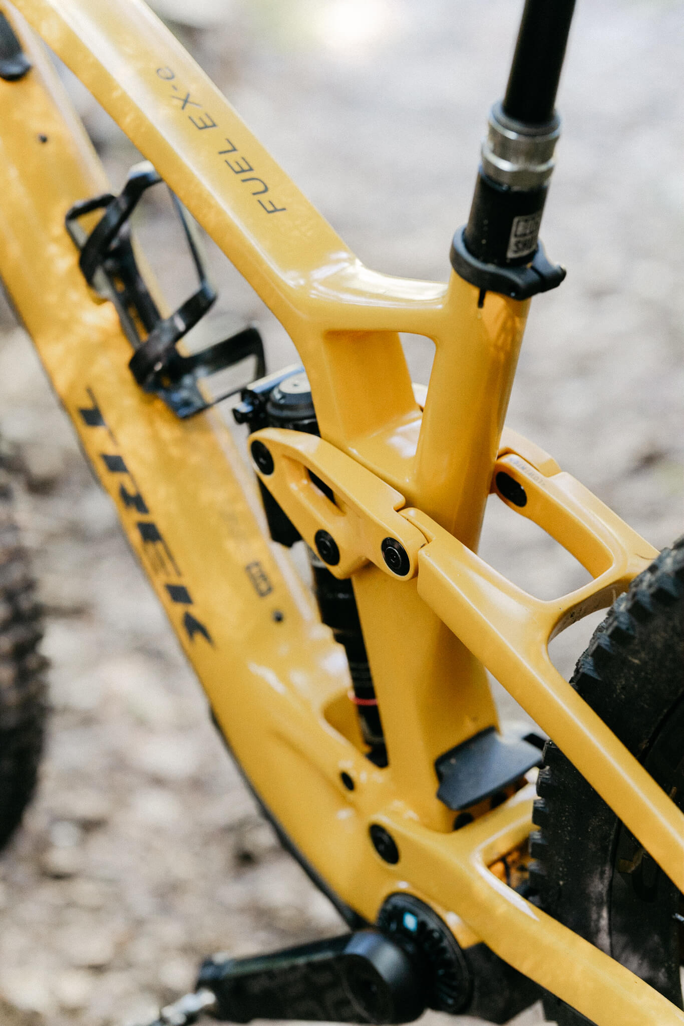 Lähdetäänpä liikkeelle spekseistä. Joustomatkaa pyörässä on edessä 150 mm ja takana 140 mm, eli molemmissa päissä 10 mm aiempaa Fuel EX:ää enemmän. Keulan suurimmaksi sallituksi joustomatkaksi Trek ilmoittaa 160 mm, mikäli pyörään kaipaa hieman pitempää joustoa. Rengaskooksi Trek on valinnut molempiin päihin 29″, mutta pyörällä voi ajaa myös mullettina. Ainakin toistaiseksi pyörä on saatavilla vain hiilikuiturunkoisena. Muotoilussa ollaan siirrytty Trekin aiempiin maastopyöriin verrattuna pyöreämpiin linjoihin. Tämä mahdollistaa myös ohjaustangon liikettä rajoittavan ja aiemmin pyöräilijöiden mielipiteitä hieman jakaneen Knock Blockin pois jättämisen uudesta mallista.