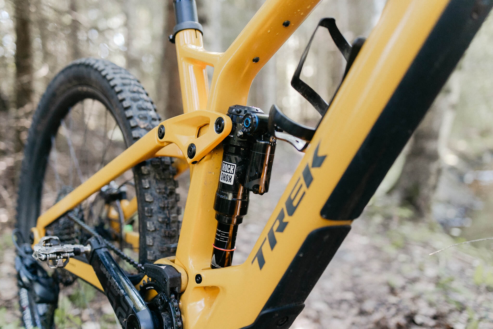 Kuraläpälle testiin tulleessa mallissa on kaikki osat viimeisen päälle. Iskunvaimennuksen hoitaa RockShoxin Lyrik Ultimate ja Super Deluxe Ultimate, kiekot ja ohjaustanko/stemmi ovat Bontragerin hiilikuitua, hissitolppa on RockShoxin langattomasti ohjattava Reverb AXS ja vaihteisto niin ikään langaton Sram XX1 AXS.