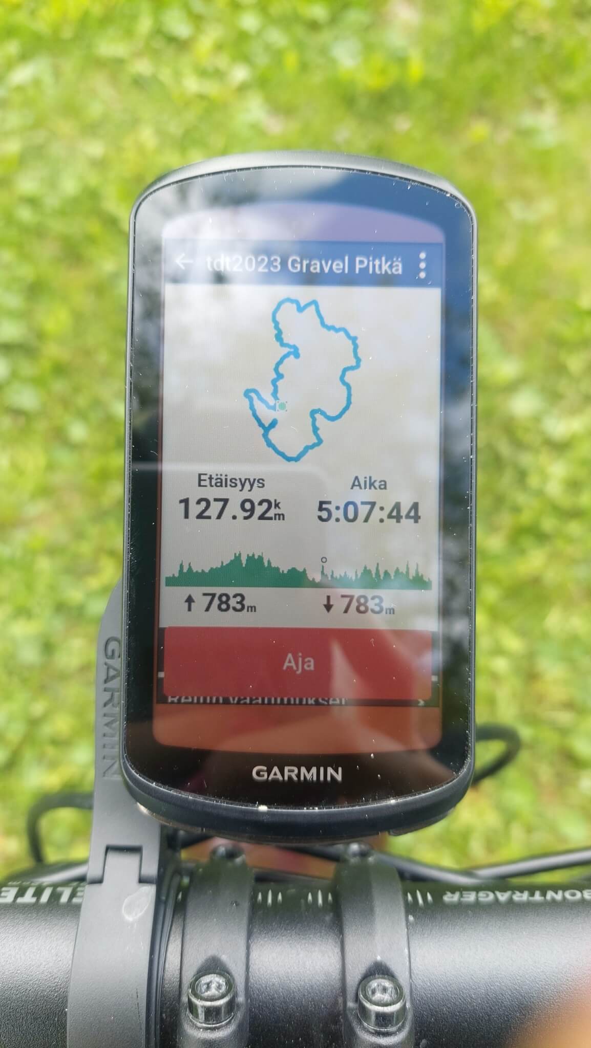 Reittejä ei ole merkattu maastoon, vaan jokainen osallistuja ajaa reitin oman gps-laitteen avulla. Mielestäni tämä oli loistava tapa järjestää tapahtuma, sillä reitin seuraaminen oli helppoa, mutta samalla sillä säästetään luontoa ja järjestäjien työmäärää. Reitti risteilee välillä asutusalueen tuntumassakin, jolloin merkkaaminen varmasti häiritsisi myös muita kulkijoita. Samalla tapahtumareittien suunnittelu olisi rajallisempaa, ja ajoja ei voisi toteuttaa näin joustavasti. Tällainen toteutustapa vaatii osallistujalta jonkinlaisen laitteen jolla seurata reittikarttaa. Itselläni oli käytössä Garminin Edge, ja tällaisena epäteknisenä ihmisenä ilahduin kuinka helposti reitti sujahti sähköpostista laitteeseen. Tuosta noin vaan! Hienoa tässä on myös se, että jokainen osallistumismaksun maksanut saa kaikkien reittien kartat, eli jokaisella on mahdollisuus ajaa useita reittejä.