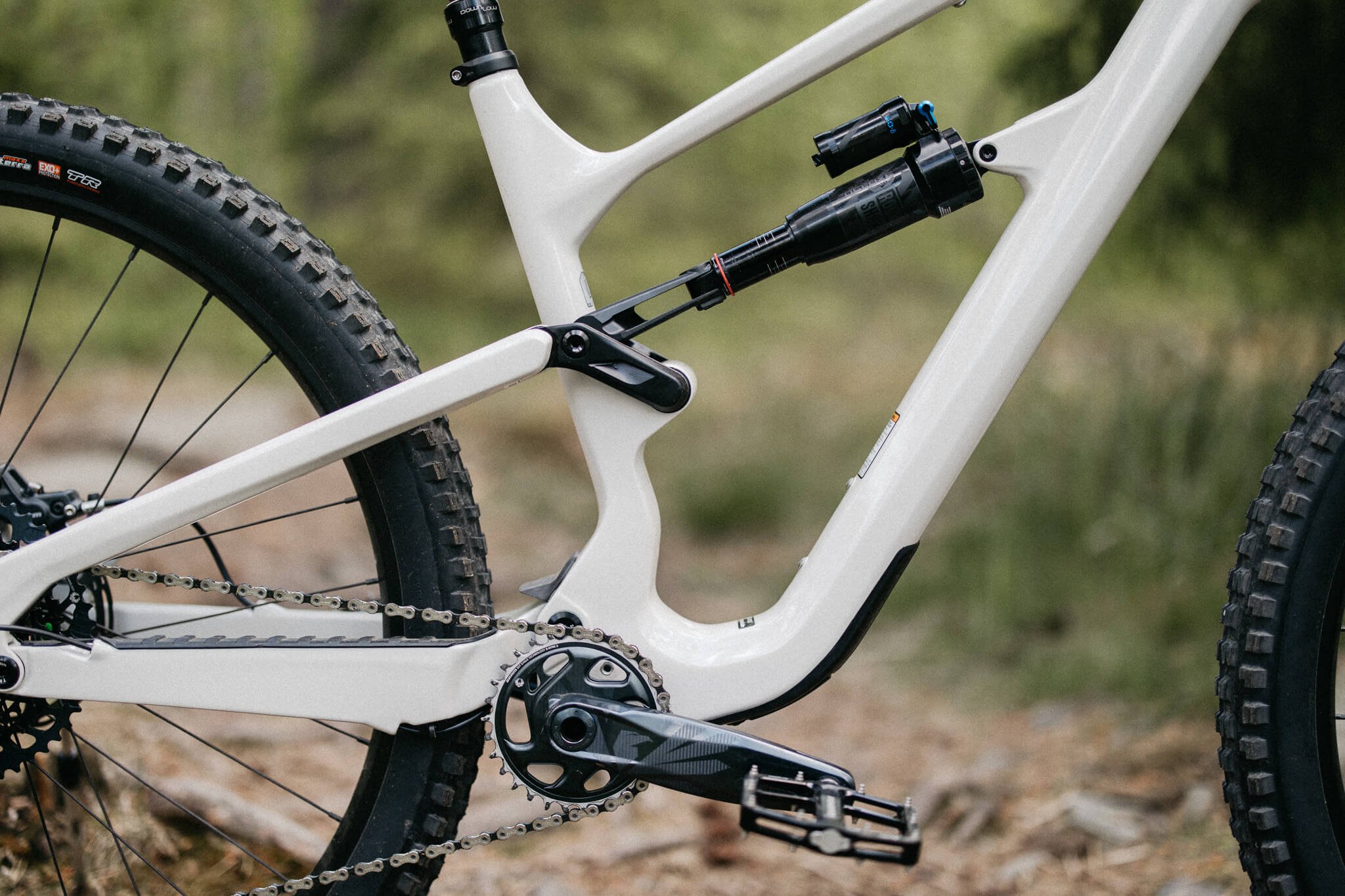 Saadessamme pyörän Kuraläpälle koeajoon totesimme välittömästi siinä olevan poikkeuksellisen järkeviä osavalintoja. Säästöjä on tehty järkevissä paikoissa ja ajokokemuksen kannalta tärkeimpiin osioihin on panostettu. Pyörässä on Sram GX Eagle -voimansiirto, jota voi hyvin pitää Sramin malliston parhaana hinta-laatusuhteeltaan. Lähes sama toimivuus, kuin kalliimmissa osasarjoissa ilman bling blingiä. Jarruiksi on valittu Sram Code R:t. R on Code-malliston edullisin versio, mutta siinäkin piisaa useimmille aivan riittävästi tehoja.