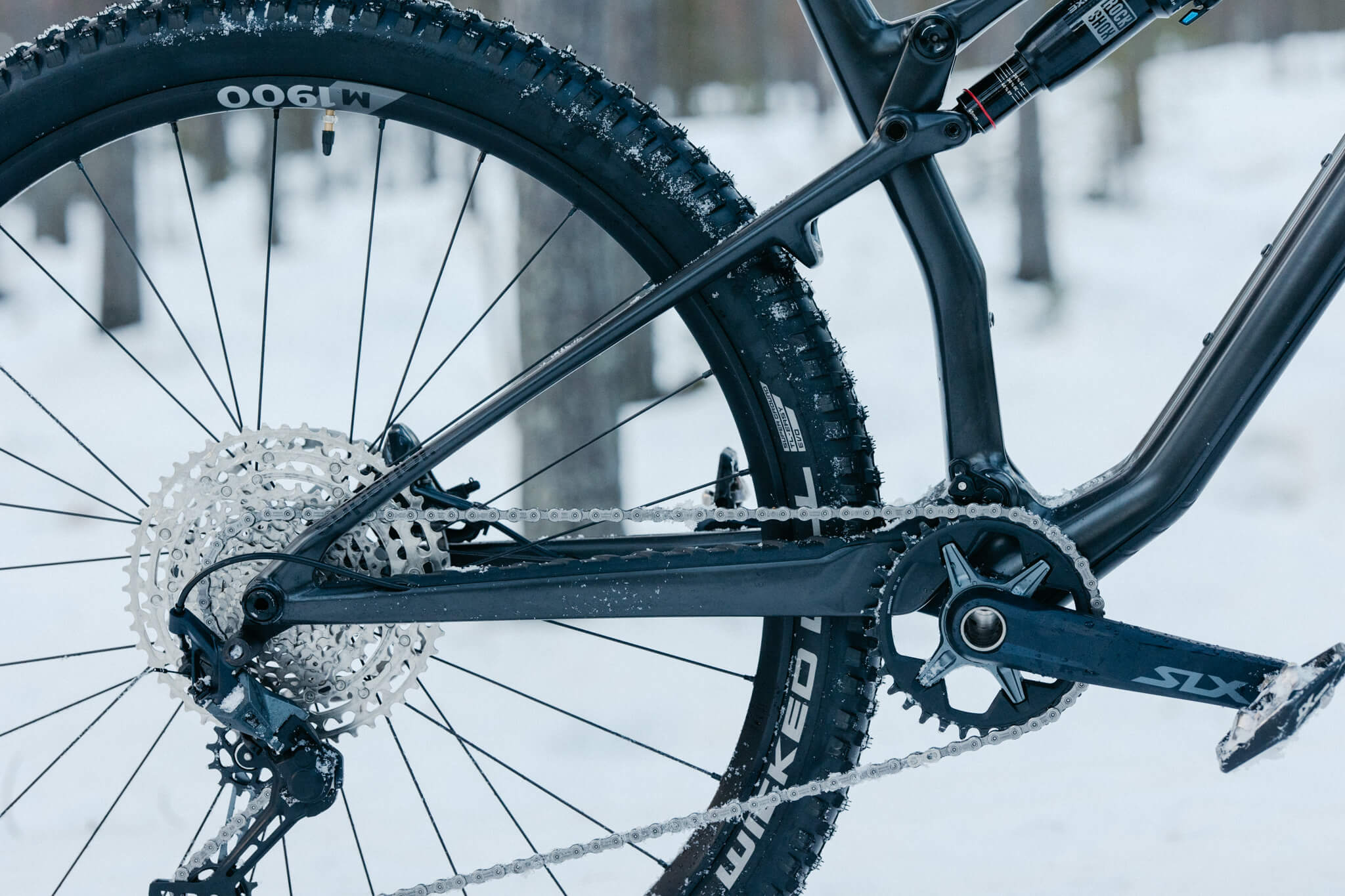 Pyörän siluetti, ohkaiset läpinäkyvällä käsittelyllä kruunatut hiilikuituputket ja minimalistinen design antavat antavat pyörälle kauniin, suorastaan elegantin ulkomuodon. Runkoa lähemmin tarkastellessa voi hyvin uskoa sen olevan peräisin XC World Cupissakin pärjänneestä kilpapyörästä. Jos pyörä näyttää keveältä niin siltä se myös tuntuu. Tämä kuitenkin johtunee pääosin hyvästä runkosuunnittelusta, sillä pyörä ei näillä komponenteilla ole oletettavastikaan downcountry -kategorian keveimmästä päästä. Kuraläpän virallinen punnitus antaa koko pyörän painoksi 13,1kg, josta on toki helppo halutessaan viilailla painoa pois valitsemalla pyörään keveämpiä osia. Toki mikäli verrataan trail-kategorian kilpakumppaneihin, ollaan jo näilläkin spekseillä keveimmässä päässä.