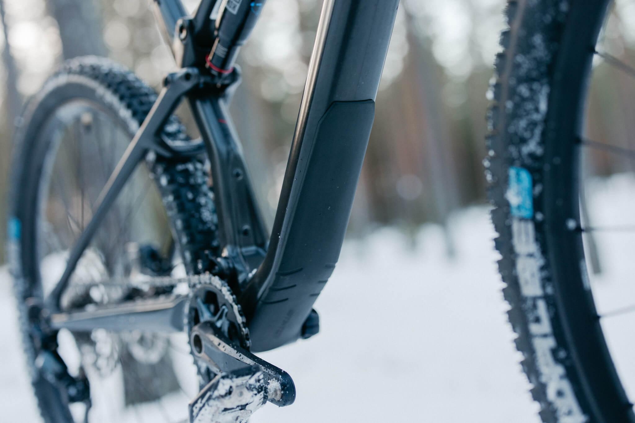 Runko itsessään kätkee sisäänsä paikan kahdelle juomapullolle, joka on mainio lisä pitkistä lenkistä nauttivalle. Alaputki on suojattu iskuilta hyvän näköisellä ja toimivan oloisella muovisuojuksella. Chainstayn ja etukolmion väliin on sijoitettu pieni kumiläppä, jolla estetään kivien joutuminen liikkuvien osien väliin ja vältytään vaurioilta. Chainstayn ketjusuoja on myös melko iso ja hyvin ketjun kolinaa vaimentava.
