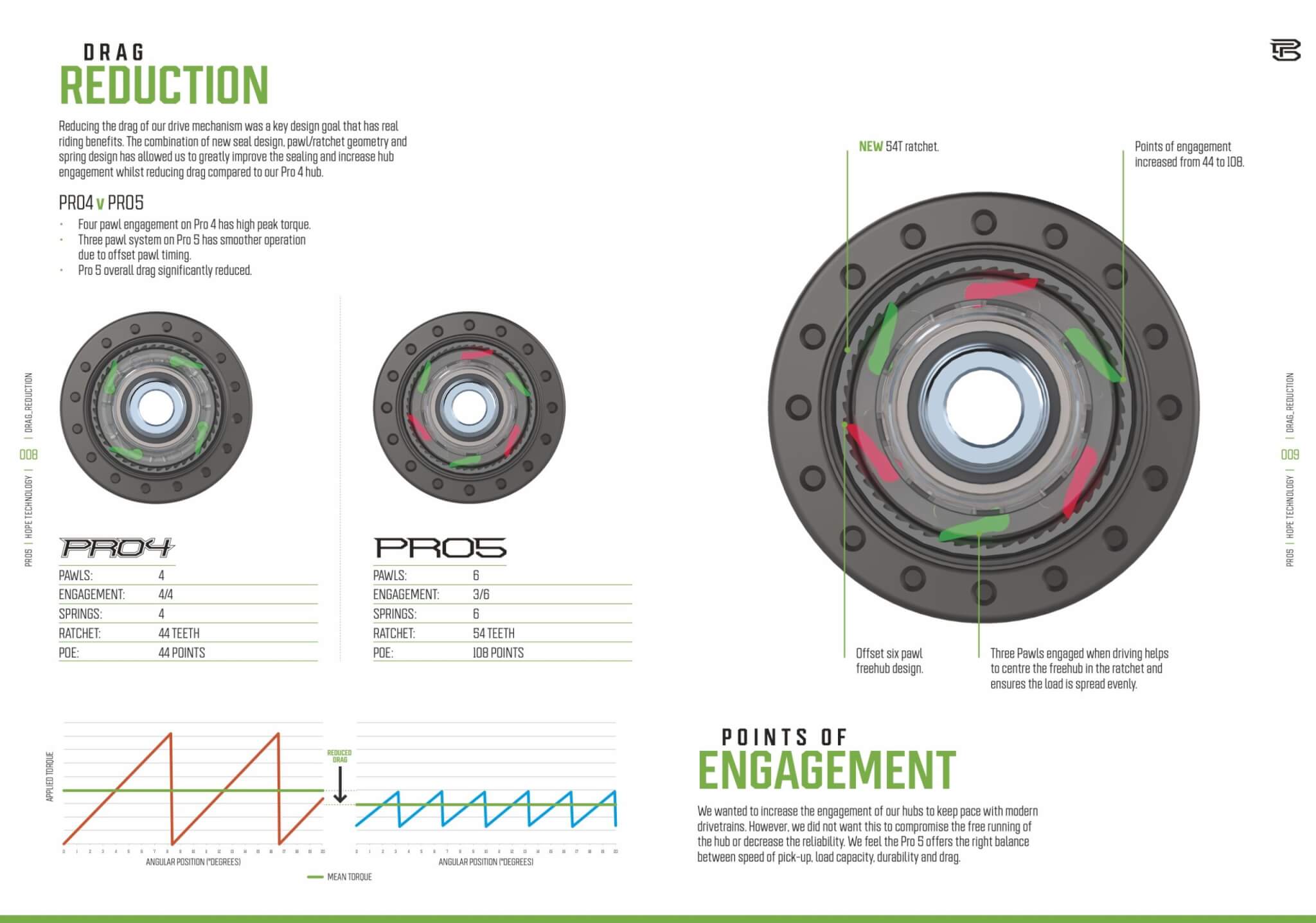 Pro 5 -napojen keskeinen suunnittelutavoite oli vähentää navan tuomaa vastusta, jota ollaan onnistuttu vähentämään juurikin uusien tiivisteiden, kynsien ja jousien avulla. Jos tarkastelee navan runkoa ulkoisesti, niin voi huomata siinä uudistetun profiilin, jonka tarkoituksena on lisätä jäykkyyttä painon siltikään kasvattamatta. Napojen uusi ohuempi akselirakenne tarjoaa mahdollisuuden käyttää suurempia laakereita, joiden ansiosta kestävyys ja kokonaisjäykkyys ovat entistä parempia.