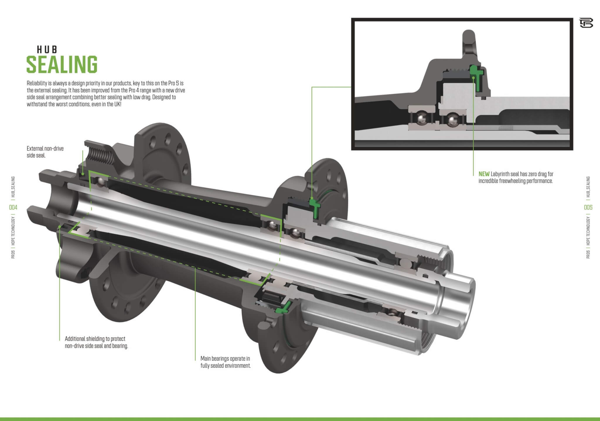 Luotettavuus on aina ollut yksi Hopen valttikortteja markkinoilla, ja sitä asemaa on lähdetty vahvistamaan. Pro 5 on suojattu entistäkin paremmilla labyrinttitiivisteillä, jotka estävät paremmin lian pääsemistä navan sisäpuolelle ja samalla vähentävät kitkaa navan sisällä.