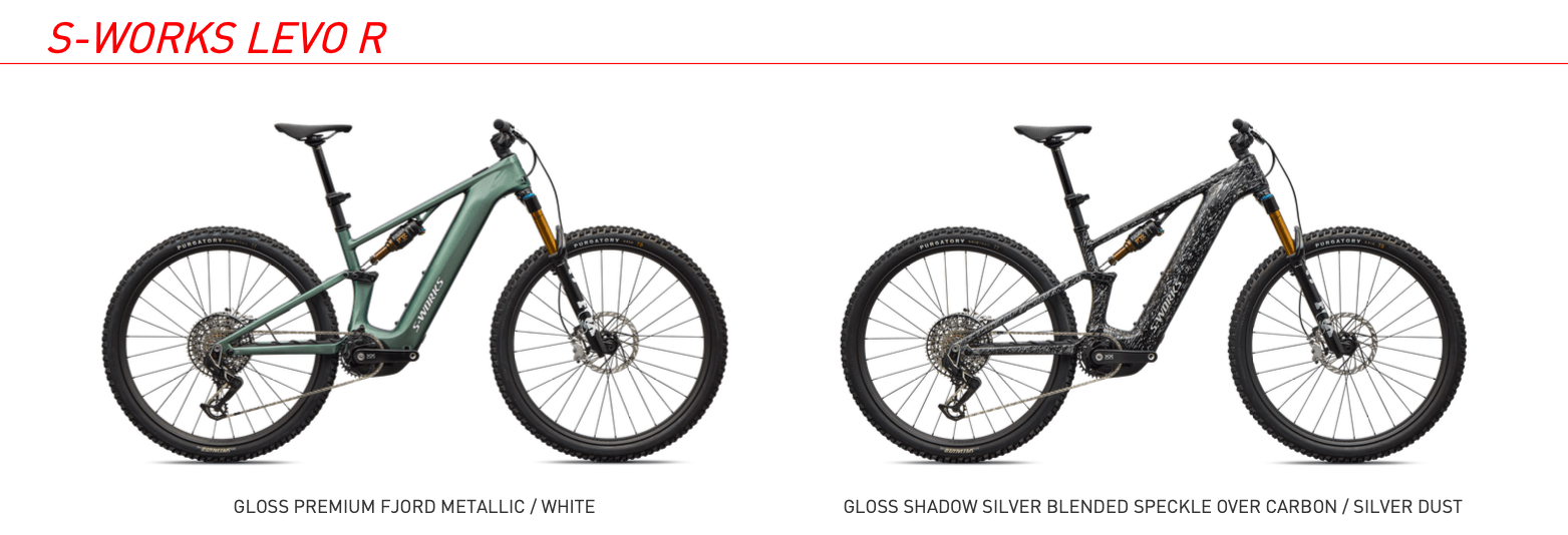 S-Works Levo R on malliston korkein varustelutaso. Pyörässä on S-Works 3.1 -moottori ja 840 Wh:n Turbo X2 -akku 12 ampeerin laturilla. Alusta muodostuu Fox 36 SL Factory -keulasta ja Fox Float Factory Genie -vaimentimesta. Voimansiirtona on SRAM XX Eagle AXS Transmission ja kiekkoina Roval Traverse SL II -hiilikuituvanteet Industry 9 Hydra 2 -navoilla. Suositushinta 14 599 euroa.